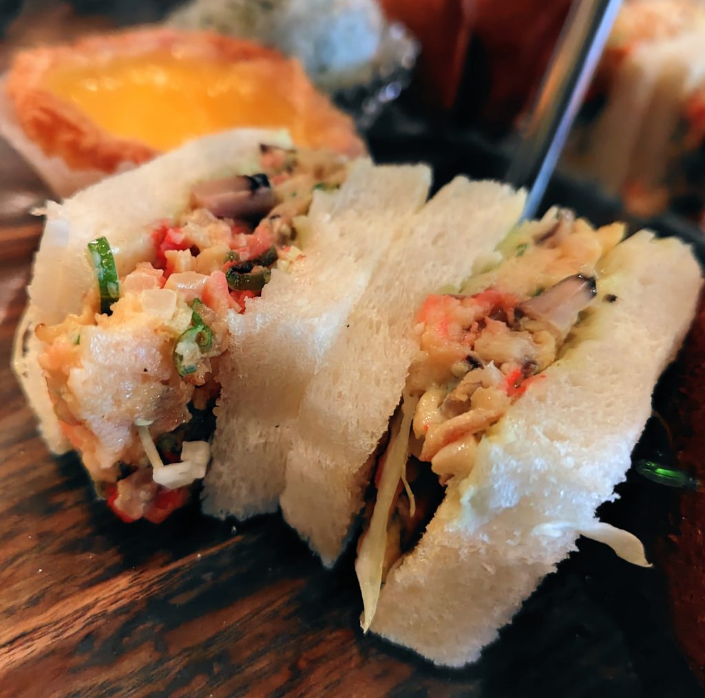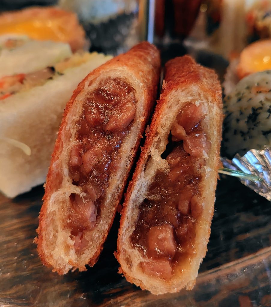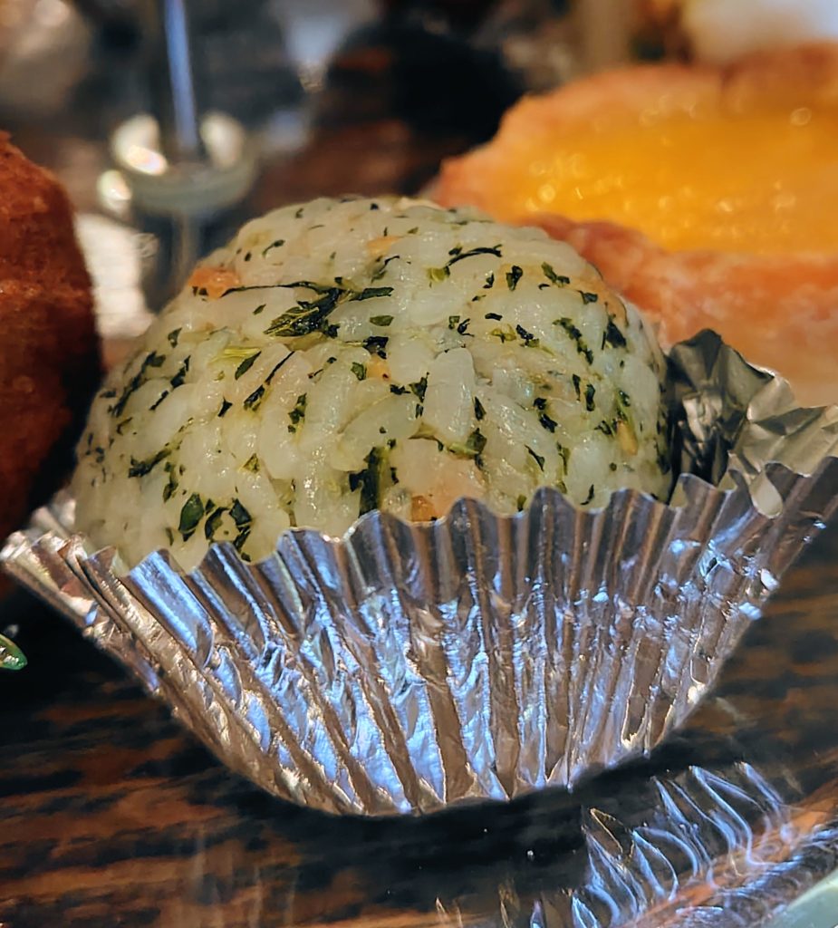 4、上海式おにぎり、豚肉フレークと中国揚げパン入り