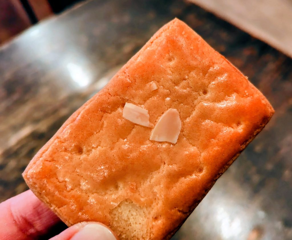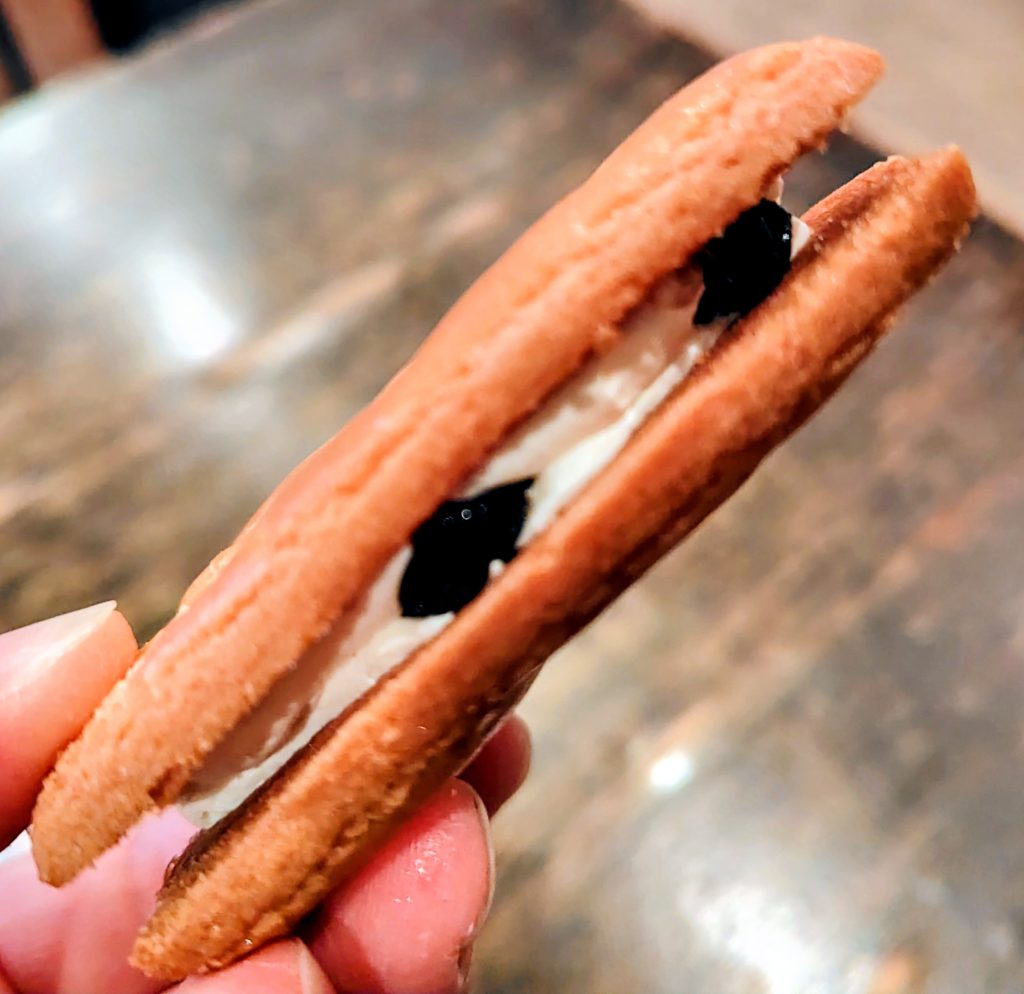 洋酒に漬け込まれたジューシーなレーズンと、生に近い特製クリームを、香ばしいクッキーでサンドし、このクッキー、レーズン、クリームの3つの絶妙なバランスが最高な美味しさが伝えてきます。