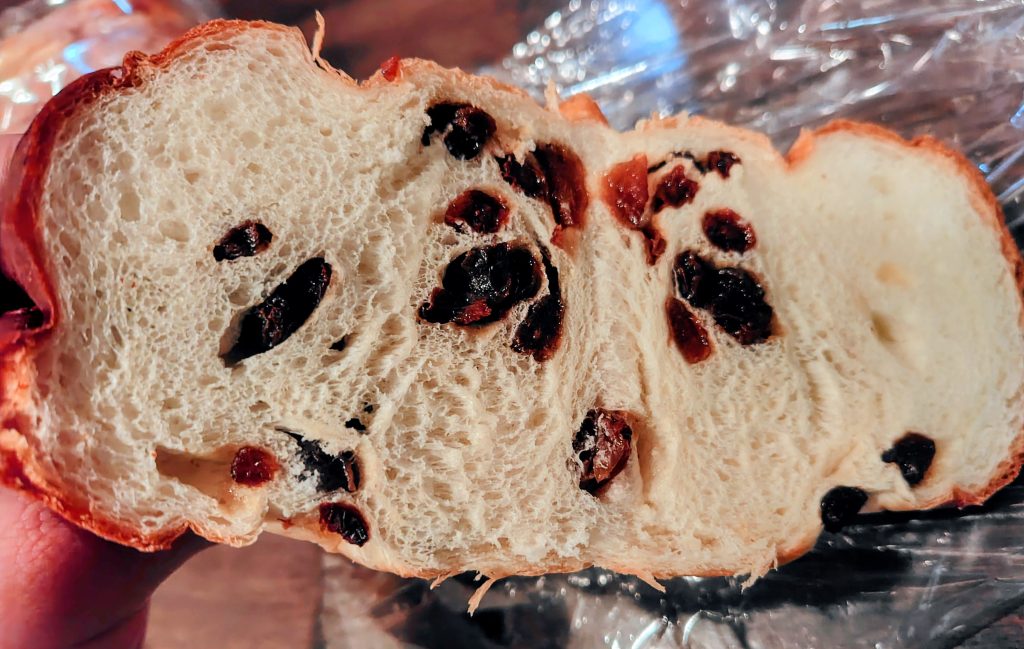 頂くと、ほんのりの甘さがあるもちもちのパンにあまいレーズンはいい風味と良いアクセントとなります。