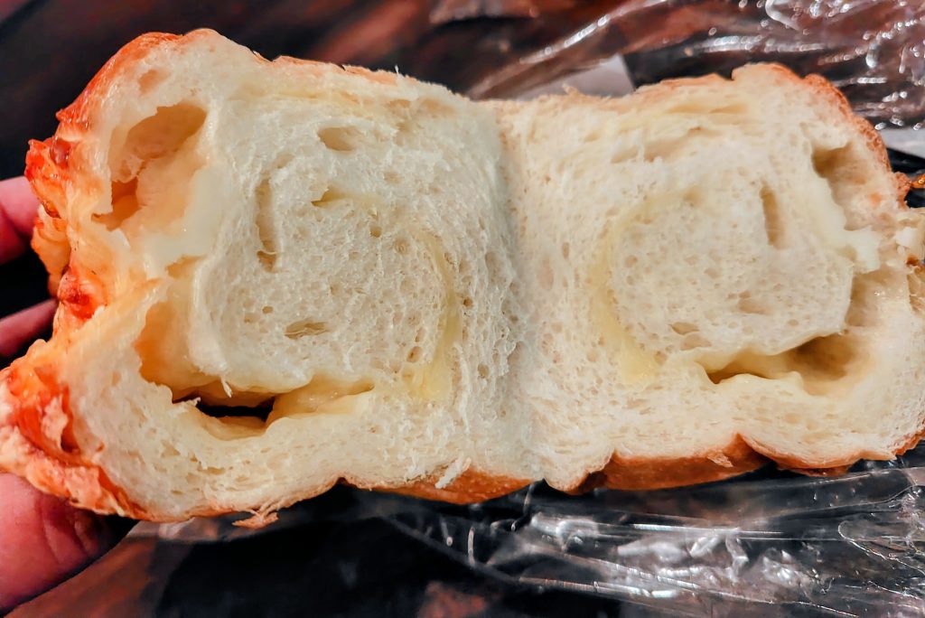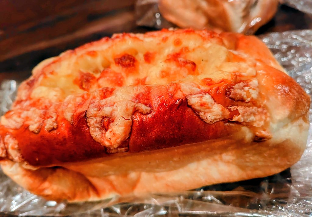 袋を開けると、表面のチーズはこんがり焼きていて、いい匂いは食欲を誘っています。