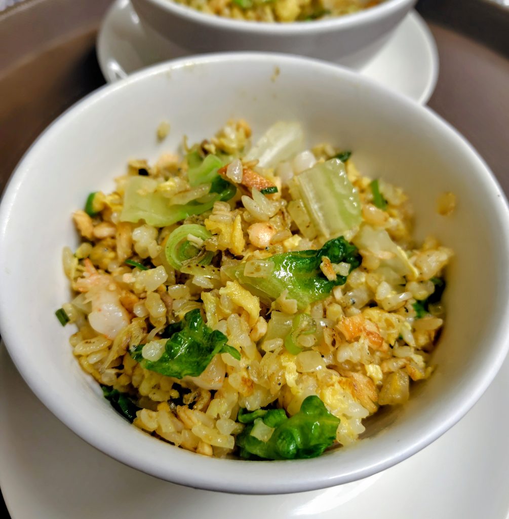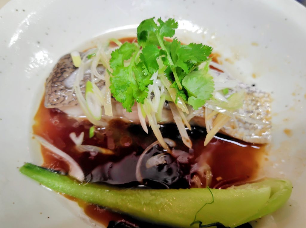 鮑、ソフトシェルシュリンプ、白身魚とA菜の広東風炒め