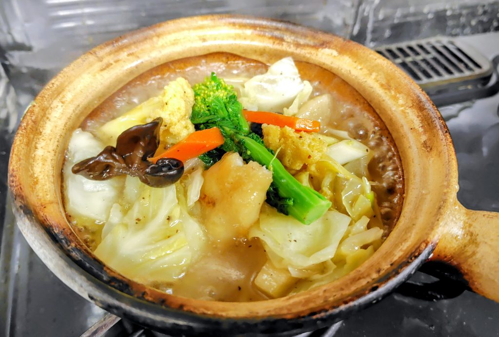甘みがたっぷり柔らかい春キャベツと彩野菜、白身魚のうまみを融合、葱、生姜の風味たっぷりあるスープを各食材に染み込んで、たっぷりの栄養成分と葱、生姜の薬用が体にぽかぽか、寒さと対抗出来ます。