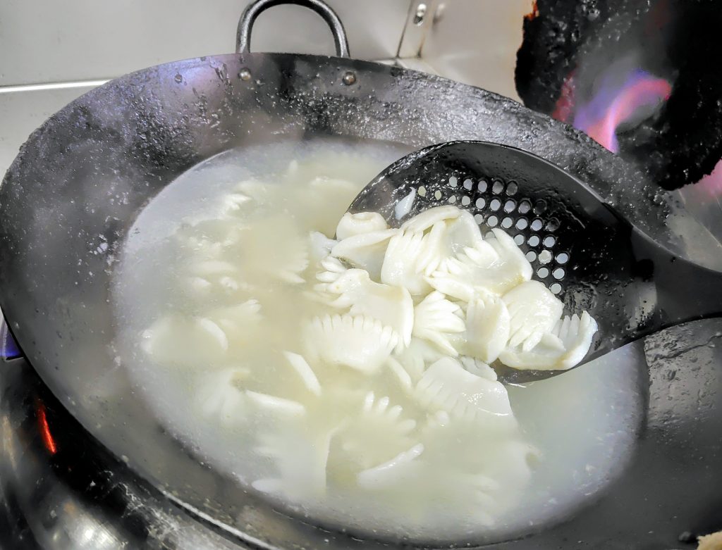 ブリブリ、柔らかいイカが白身魚を負けないぐらい、うまみを出ていて、他の具のうまみとうまく融合して、クリームの濃厚な風味を味わいながらあっさりし口当たり、食べやすいです。ごはんを入れたら、よくかき混ぜて、リゾットみたいでもう一層うまみが増え、もう一層楽しめます!!この楽しみは人気の秘訣です!!もちろん、食べたお客様は皆体がぽかぽかになり、大満足になりました!!