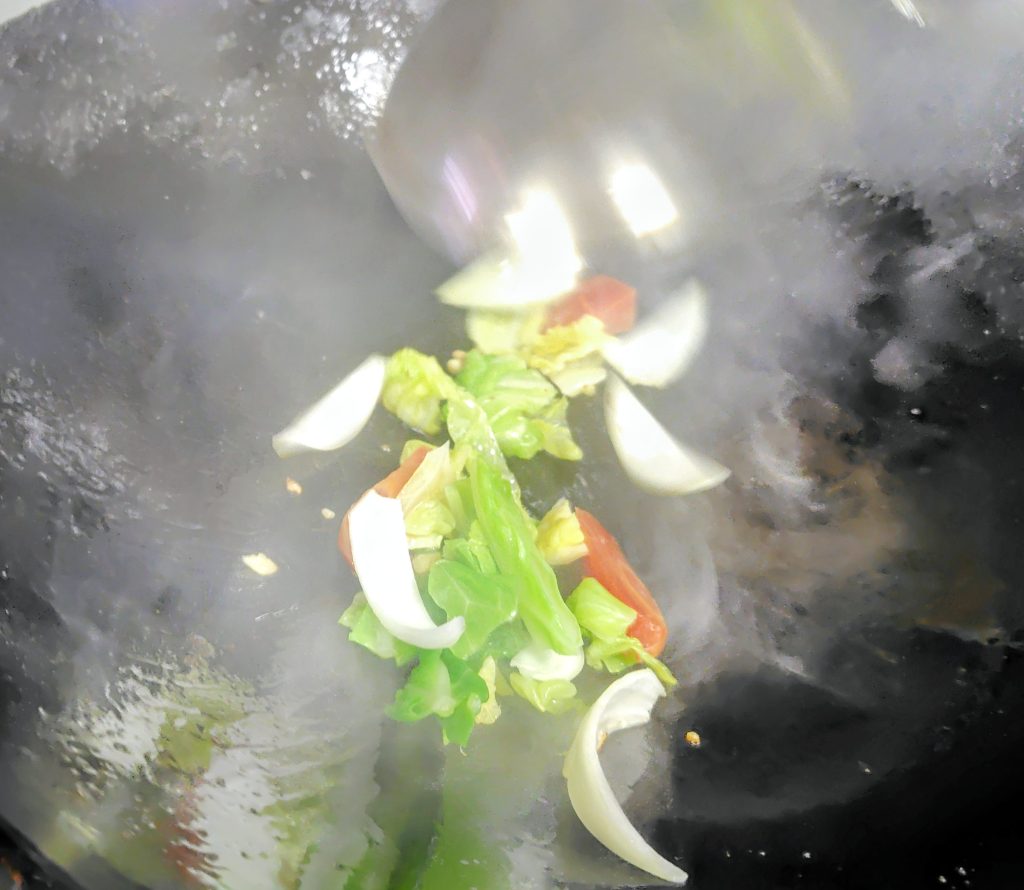 用意した野菜を入れて、炒め